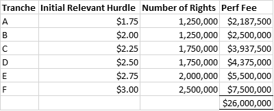 Pay $11.5m investment fees ($8.6m Performance Rights + $3m investment management fees)